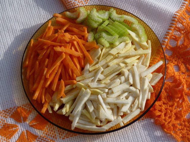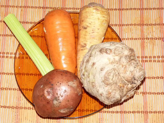 Чистим корнеплоды, моем зелень.