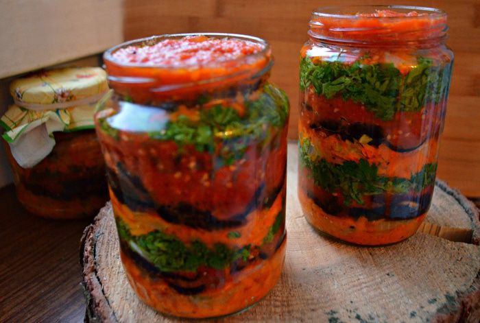 Закрутить банки простерилизованными крышками, перевернуть, укутать и оставить до остывания. Остывшие банки убрать на хранение в прохладное место (холодильник, погреб, подвал или на балкон). Уверена, что эта вкусная и яркая закуска из овощей порадует вас и вашу семью в холодное время года, напомнив о прекрасной осени!