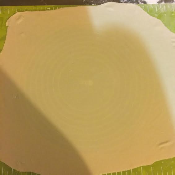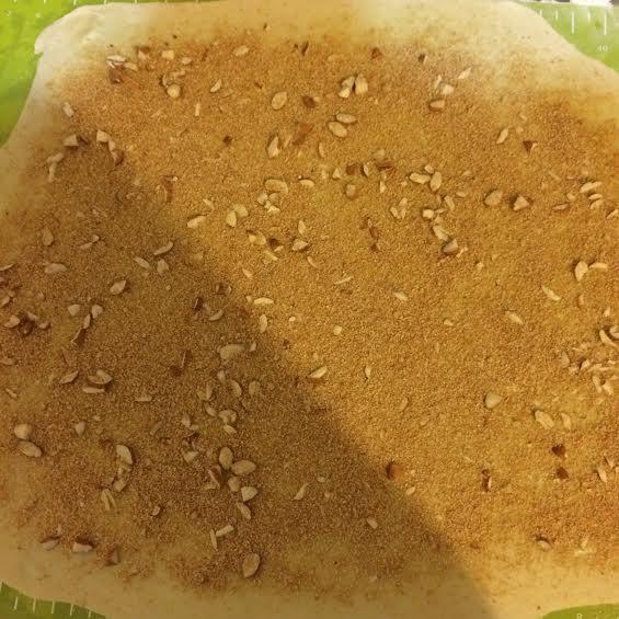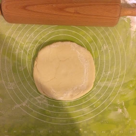 Духовку нагреть до 180°C. Коврик для выпечки посыпать 1 ст. л. муки и начать раскатывать тесто (если нет коврика, то можно тесто раскатать на полотняной салфетке).