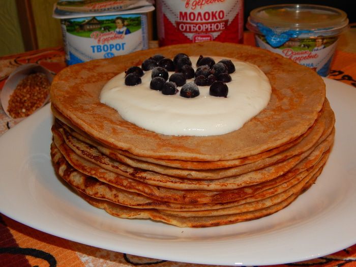 Гречневые блины получаются нежными и очень ароматными. Блины по этому рецепту толстенькие, но не менее вкусные, чем тонкие.