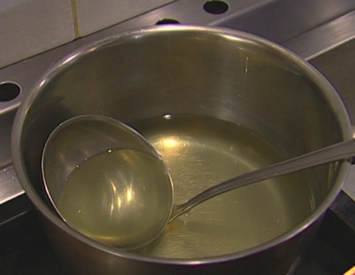 Влить 2 л холодной воды, добавить лавровый лист, перец горошком, довести до кипения и варить на медленном огне около часа.