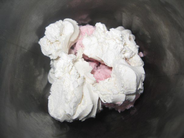 Заливаем 200 гр сливок, взбиваем до однородной массы.
