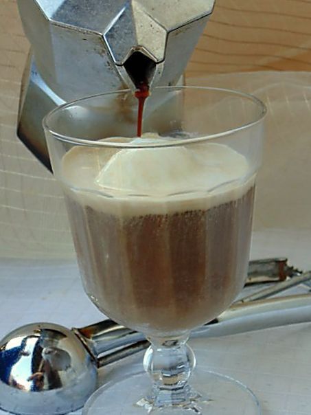 Добавить горячий кофе к мороженому. Наслаждаемся! По желанию можно добавить немного ликера по вкусу.