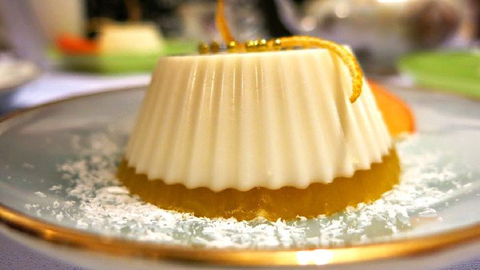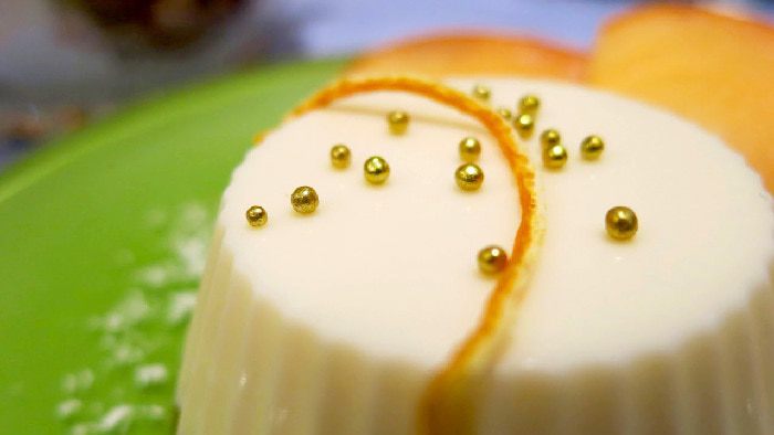 Сливки - обязательно большой жирности. Тогда консистенция панна-котты в сочетании с правильной пропорцией желатина будет именно кремово-сливочной, а не тягуче-желейной. Итак, сливки подогреваем, но не доводим до кипения. Просто "томим" при температуре около 70 градусов минуты 1,5. Добавляем сахар, ванильный сахар. При желании - ваниль, но тогда не забудьте процедить сливки. В "томящиеся" сливки натираем на самую мелкую тёрку цедру одного лимона. Главное, чтобы не попал сок. Иногда, не смотря на то, что что сливки не кипят, они могут свернуться от кислого сока. Тогда можно переходить к приготовлению маскарпоне, но это другая история :) А так, мелко натёртая цедра замечательно отдаёт свой аромат сливкам. Для тех, кто не любит частички цедры, сливки можно процедить, после остывания. Мне нравиться, когда в сливочной массе есть "что-то" такое... Я оставляю цедру.