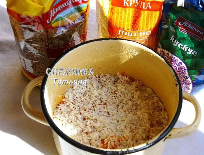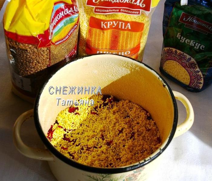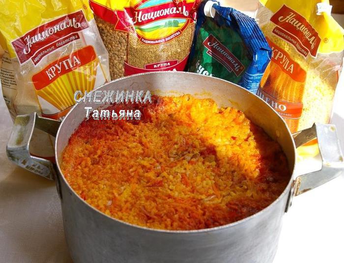 В данном рецепте я использую кускус, рис «Для плова», гречу и пшено ТМ «Националь», а также манную крупу ТМ «Националь» для присыпки кастрюли. Данная продукция по-настоящему качественная, идеально подходит для «царского» блюда.