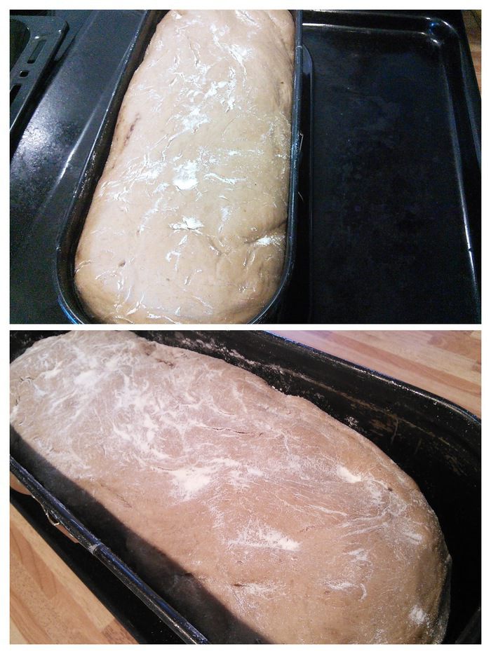 У меня хлеб будет выпекаться в форме для кекса. Необходимо смазать форму маслом и выложить его швом вверх в форму. Накрыть плёнкой и дать уже в форме подойти в течении 35 минут.
