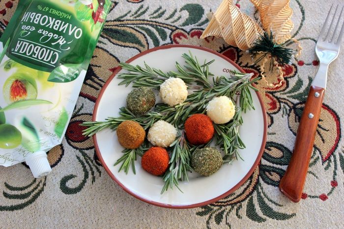 Брынза для этой закуски нужна твердая, т.е. такая, которую можно мелко натереть. Яйца нужно предварительно сварить в течение 5 — 7 минут в зависимости от размеров, охладить и очистить. Веточки свежего розмарина ополосните и обсушите. Отличный вкусовой оттенок закуске придал майонез Оливковый ТМ «Слобода».