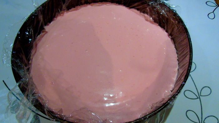 Введите шоколадно-желатиновую смесь. Охладите пока крем не начнет густеть.
