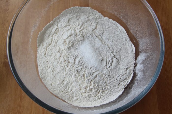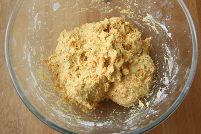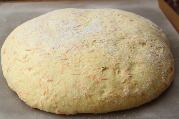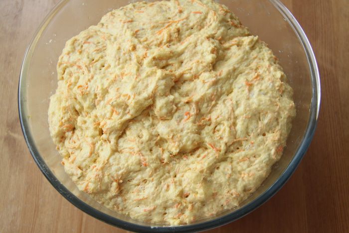 Оставить тесто в миске, закрыв пищевой плёнкой, на подъём на 1,5-2 часа.