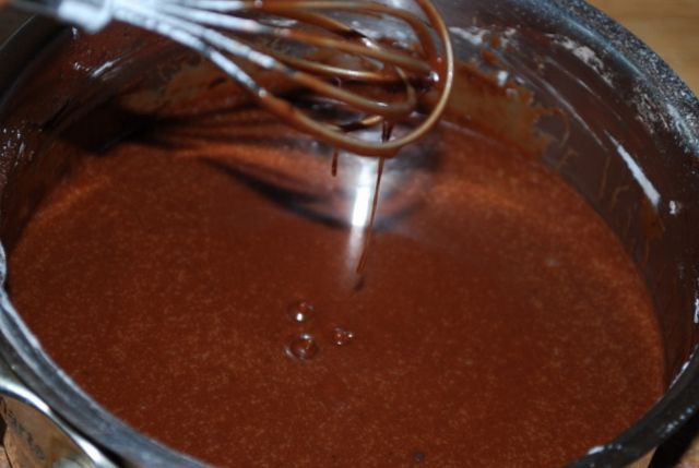 Добавить муку, замешать жидкое тесто и оставить на пол часа настояться.