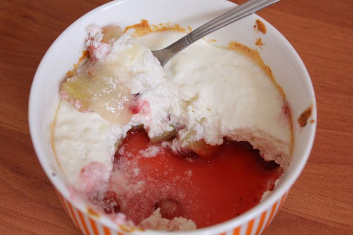 Ммм... Обожаю его! Готова есть каждый день! Фрукты и ягоды используйте любые, которые вам больше нравятся. У меня вариант с клубникой и ревенем. А еще мне нравится сочетание груши и смородины , абрикоса и клубники , жимолости и сливы... Ох, много с чем нравится :)