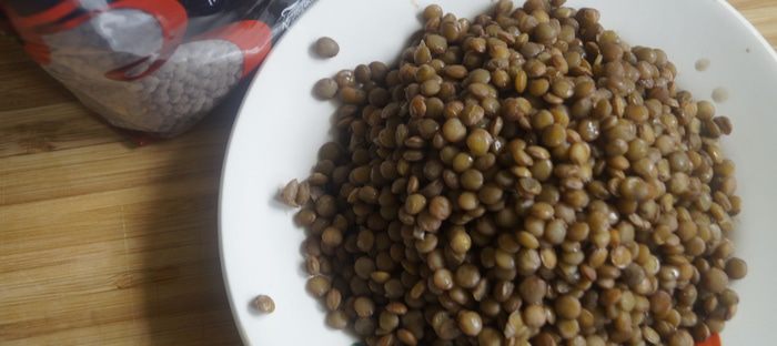 Чечевицу отварить до готовности как указано на упаковке. Дать ей остыть.