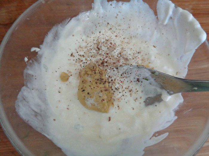 Приготовьте соус для салата, смешав для этого все ингредиенты.
