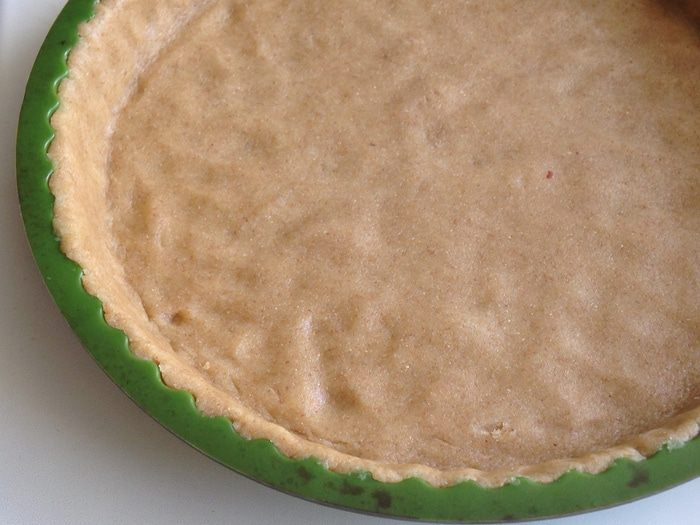 Тесто раскатать между двумя листами бумаги для выпечки аккуратно выложить в форму. Лишнее тесто срезать и подровнять бортики.