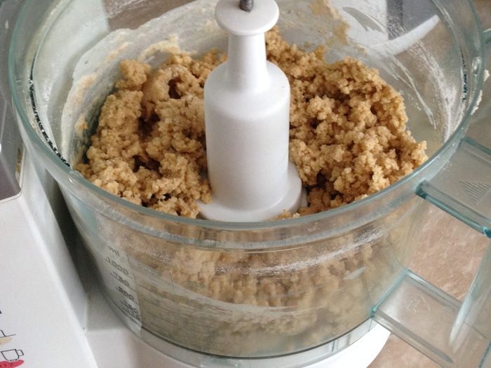 Продолжать вымешивать до получения комка. Если тесто не собирается в комок, то можно добавить 1-2 ст. л. холодной воды.