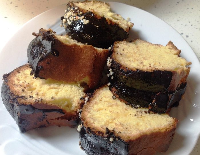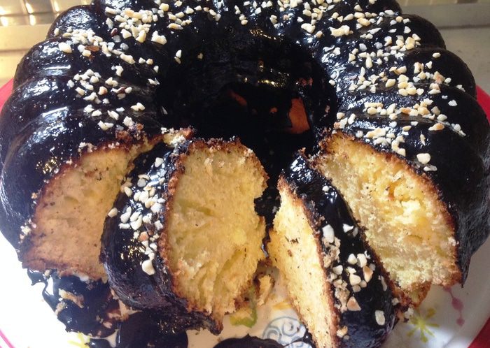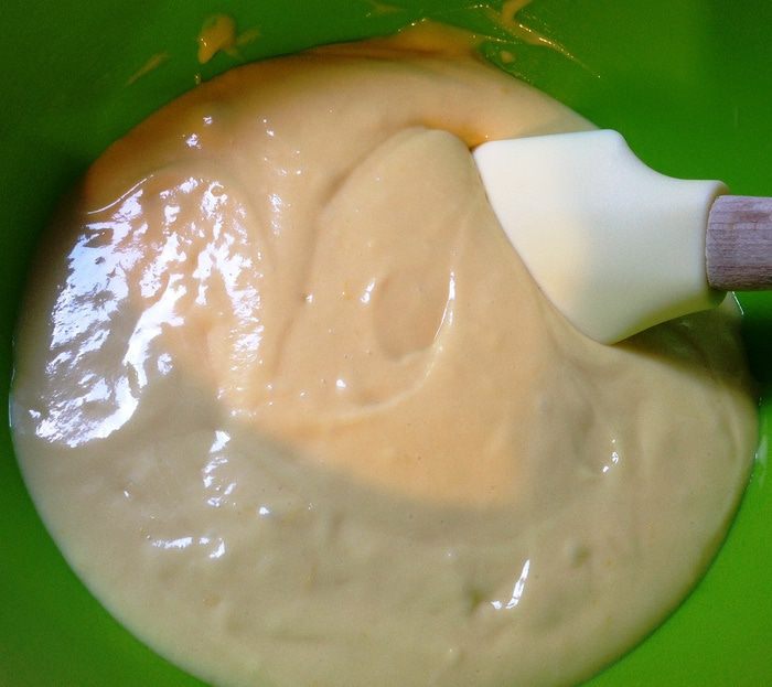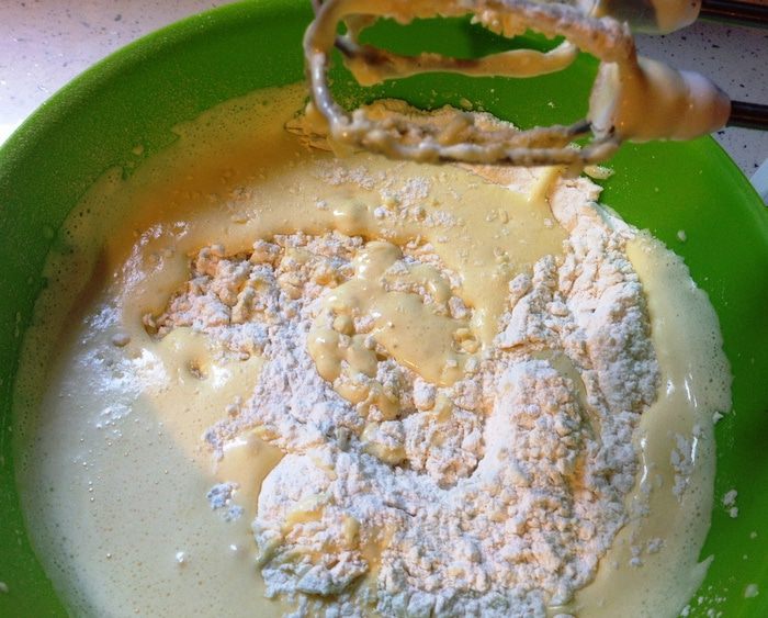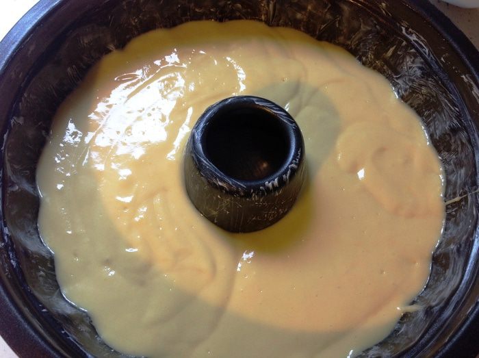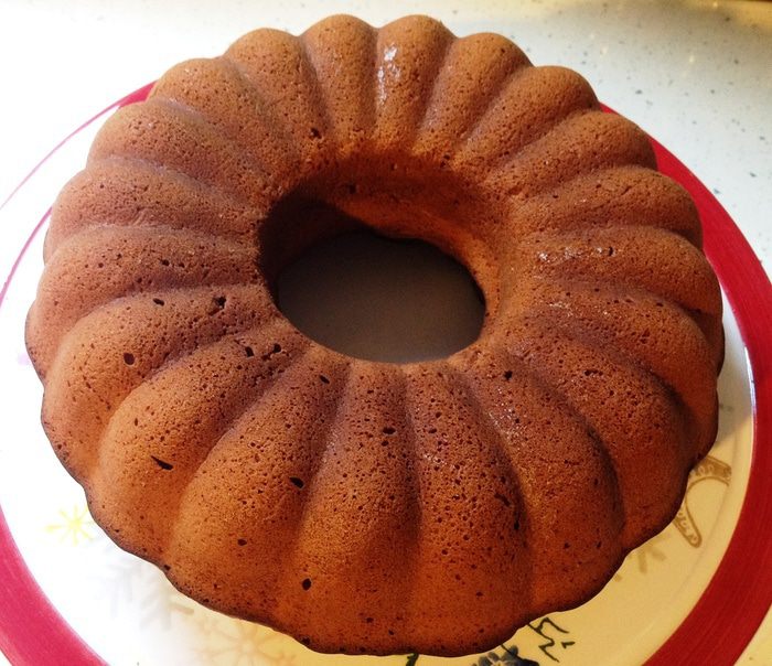 Аккуратно вылить в форму тесто, стараясь распределять равномерно. Форму с тестом слегка встряхнуть и резко ударить дном об стол 2-3 раза. Это делается для того, чтобы вышел лишний воздух и тесто равномерно "село" в форму. Таким образом, при выпечке кекс поднимется со всех сторон поверхности одинаково. Поставить в разогретую заранее духовку. Выпекать при температуре 170 градусов примерно 40 минут.