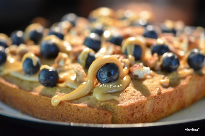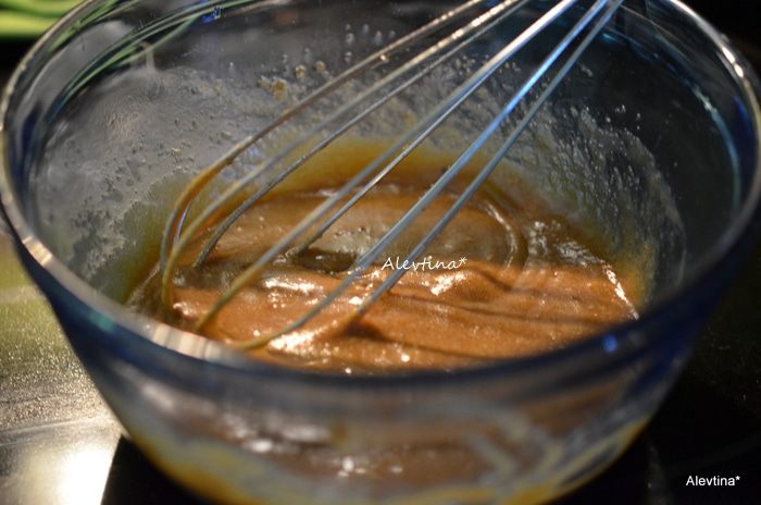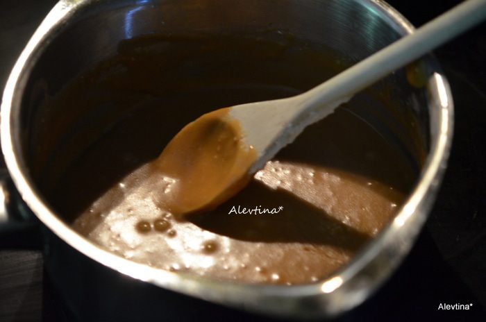 Приступить к приготовлению глазури. Смешать сахар и масло сливочное, сливки в кастрюльке. Поставить на высокий огонь на 1 мин. Помешивать постоянно. Снять с огня добавить ванилин и сахарную пудру. Быстро перемешать, получится густая карамельная масса, которая быстро застывает. Поэтому готовить ее лучше после того, как кекс готов.