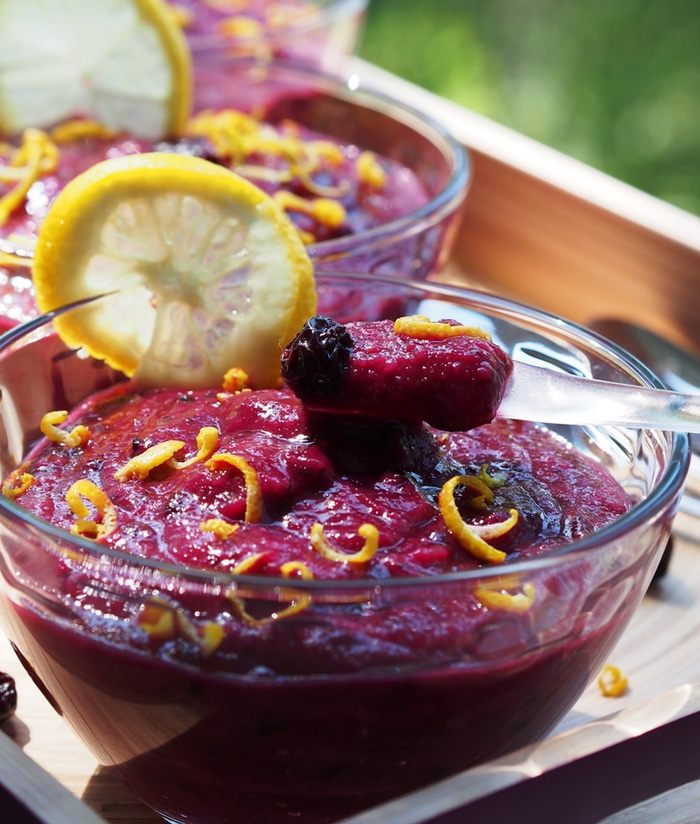 Разложить по креманкам, украсить по желанию вяленой вишней или другими цукатами, натертой цедрой и ломтиками лимона.