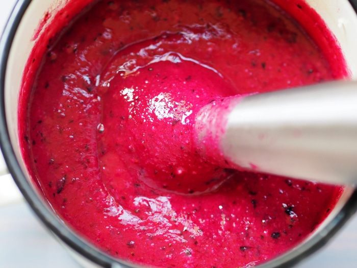 Хорошенько взбивать все продукты блендером 5-7 минут, до получения пышной, однородной массы.
