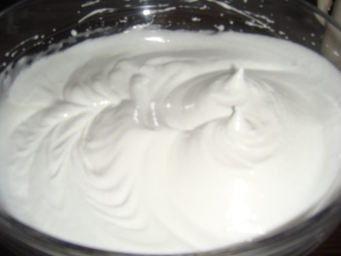 Для безе взбить белки с сахаром до устойчивой пены.