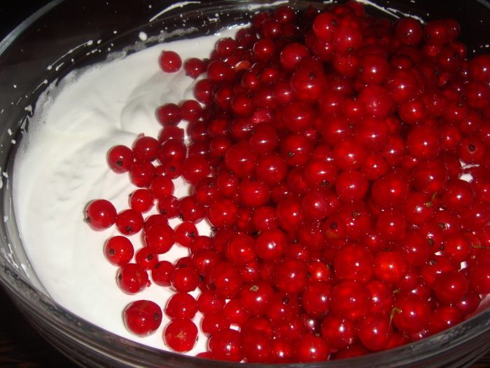 Ягоды вымыть, обсушить и добавить к белкам. Аккуратно перемешать.