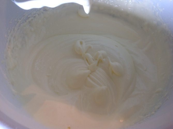 Пока допекается второй корж делаем крем: банка сметаны (400гр) взбиваем с 6-7 ст ложками сахарной пудры, пудру можете добавлять постепенно, регулируя уровень сладости какой вам подходит больше. Крем получается достаточно густой.