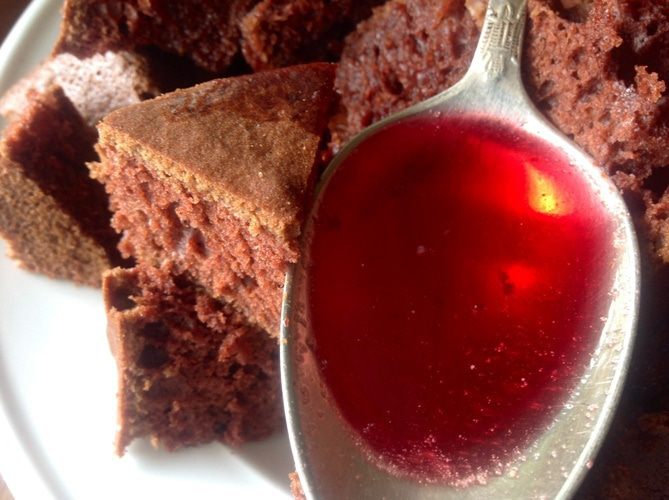 Делаем пропитку для коржей: 2 ст ложки воды + 2 ст ложки сахара + несколько вишенок, вскипятить и дать остыть.