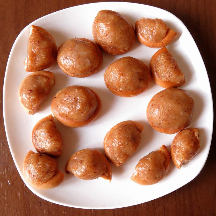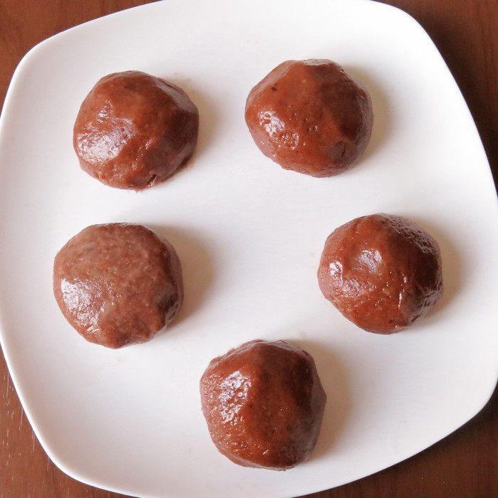 Из темной массы мокрыми руками формируем шарики. Всего получается 10 штук.