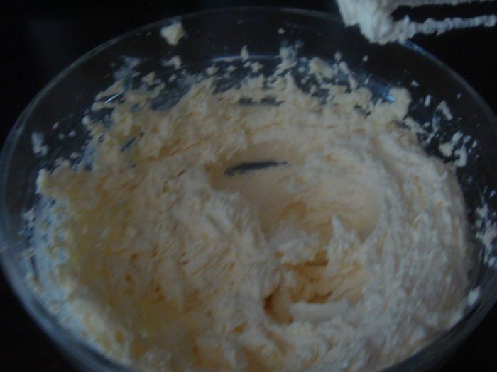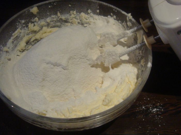 в глубокой миске миксером хорошо взбить:сливочное масло комнатной температуры(можно и маргарин), растительное масло, 100 грамм сахарной пудры.