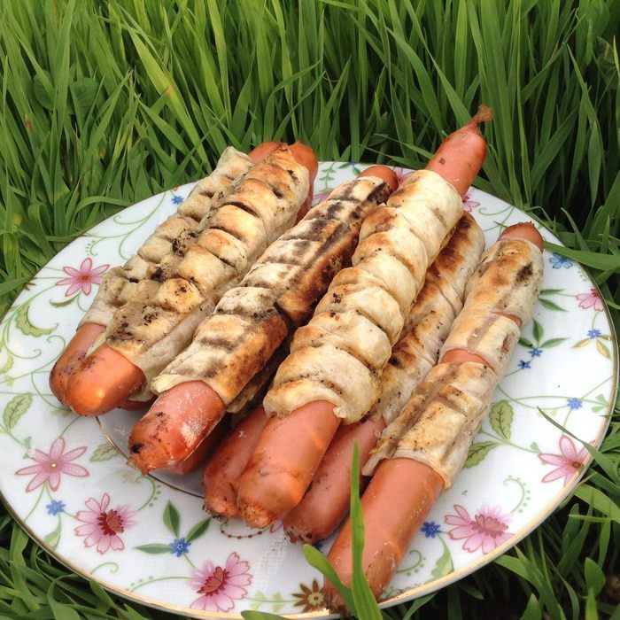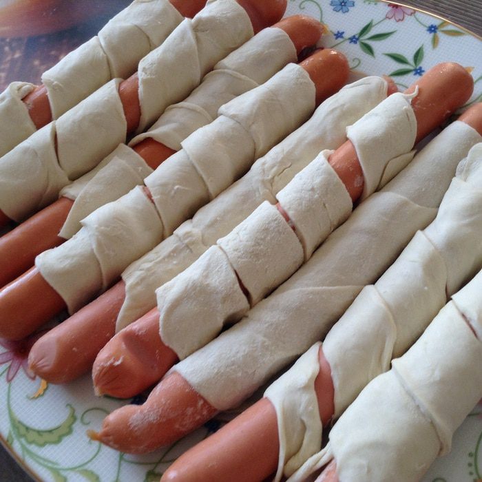 Каждую сосиску обвить полоской теста.