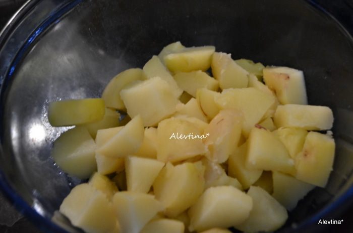 Очистить от кожуры и порезать кубиками.