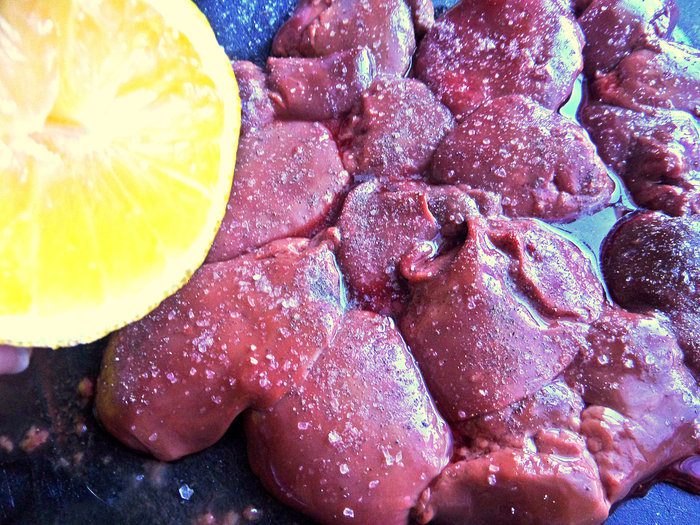 Печень промыть, отрезать жилки.