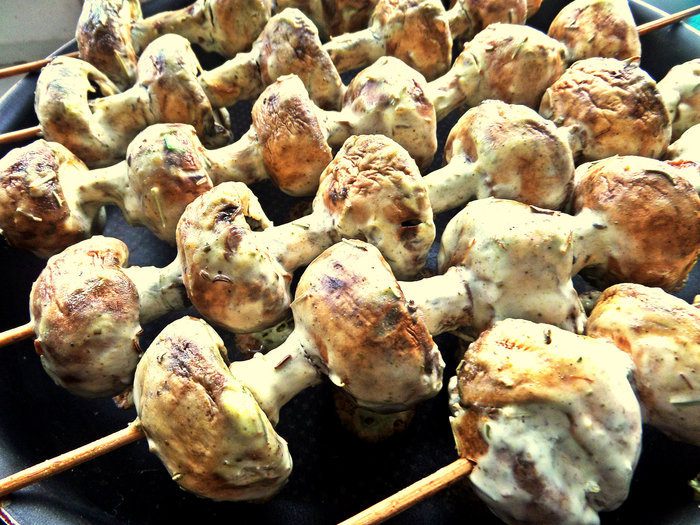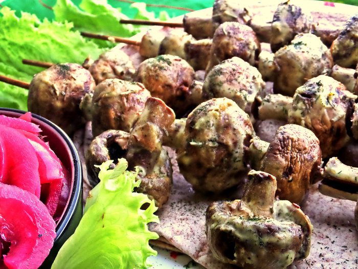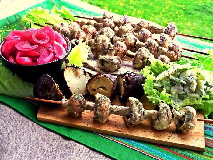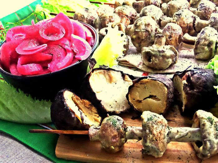 Идеально подать грибной шашлык с картошечкой,запечённой в углях!