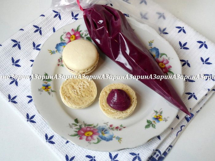 Затем отсадить начинку на половинки макарон и соединить попарно.