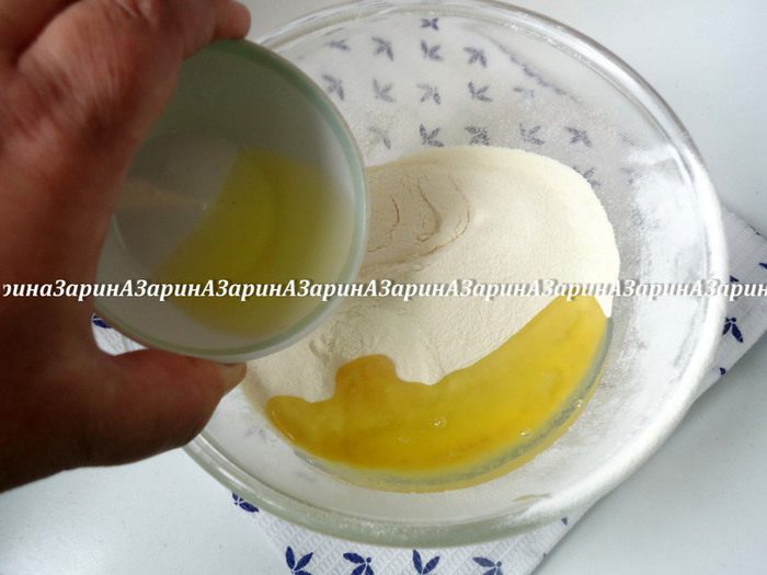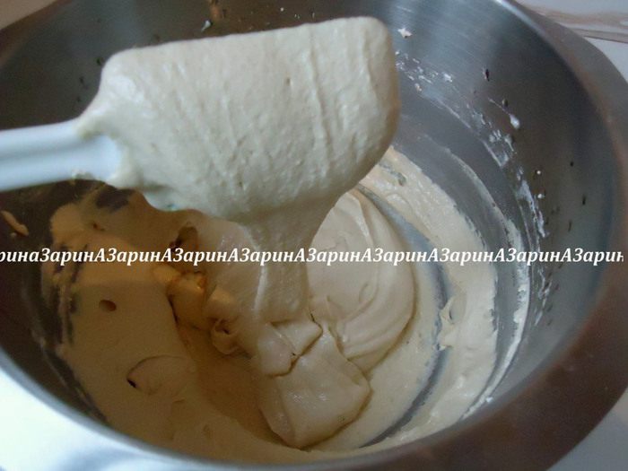 Хорошо перемешать до состояния «широкой ленты», т.е. тесто должно стекать непрерывной лентой.