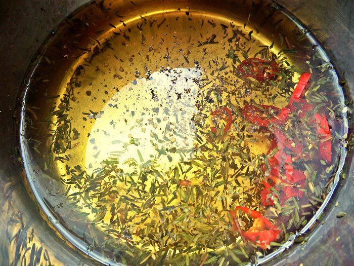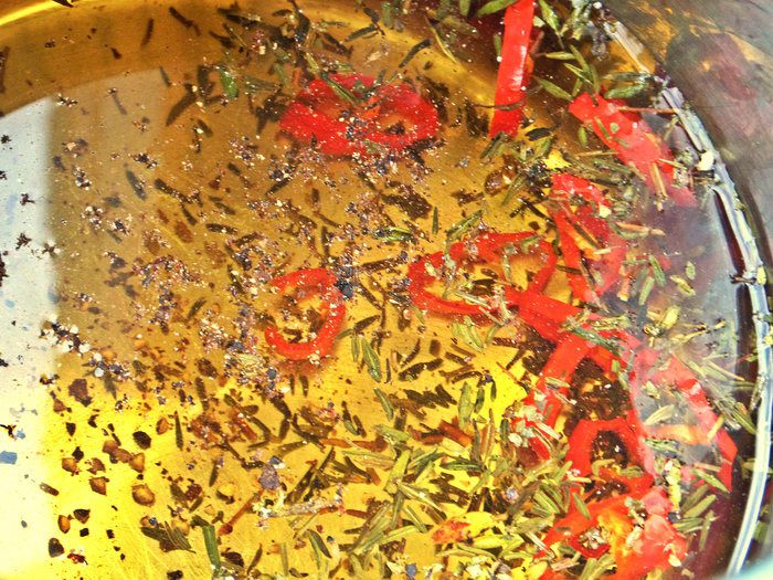 Готовим маринад. Заливаем воду, масло, специи в кастрюльку.