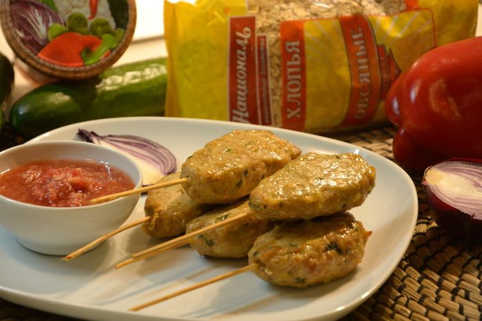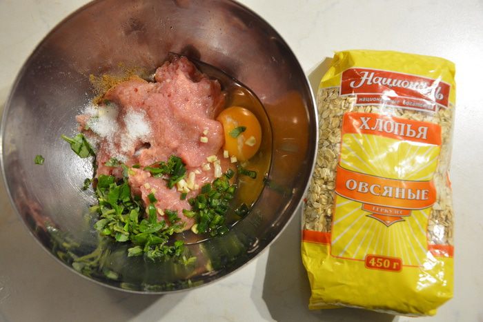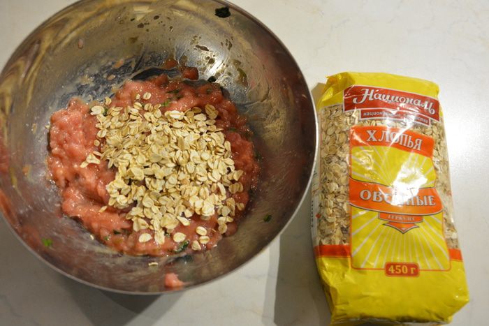 Вкусные и полезные котлеты на ужин. Овсяные хлопья совсем не чувствуются, фарш получается нежным и сочным.