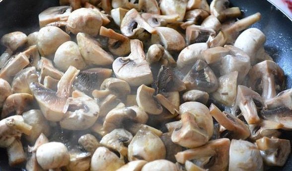 Грибы помыть и обсушить бумажным полотенцем. Разрезать на 4 части. Обжарить на сковороде с добавлением сливочного масла в течение 5 минут.