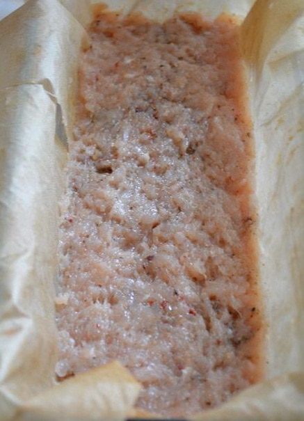 Форму смазать растительным маслом, я выстилаю форму тефлоновым ковриком, потом удобно вытаскивать террин.