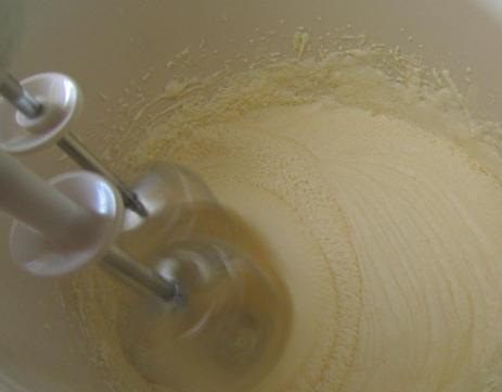 В другой миске смешиваем масло и сливки и добавляем к ним сухие ингредиенты. Добавляем яйцо и ванильный экстракт.
