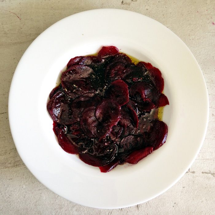Свекла для карпаччо подойдет вареная или печеная (я предпочитаю последнюю). Вместо крема из маскарпоне можно использовать козий сыр, мягкий творожный или голубой. Орехи тоже выбирайте по вкусу — свекла дружит и с грецкими, и с кедровыми, и с фисташками. Ориентируйтесь на свой вкус!