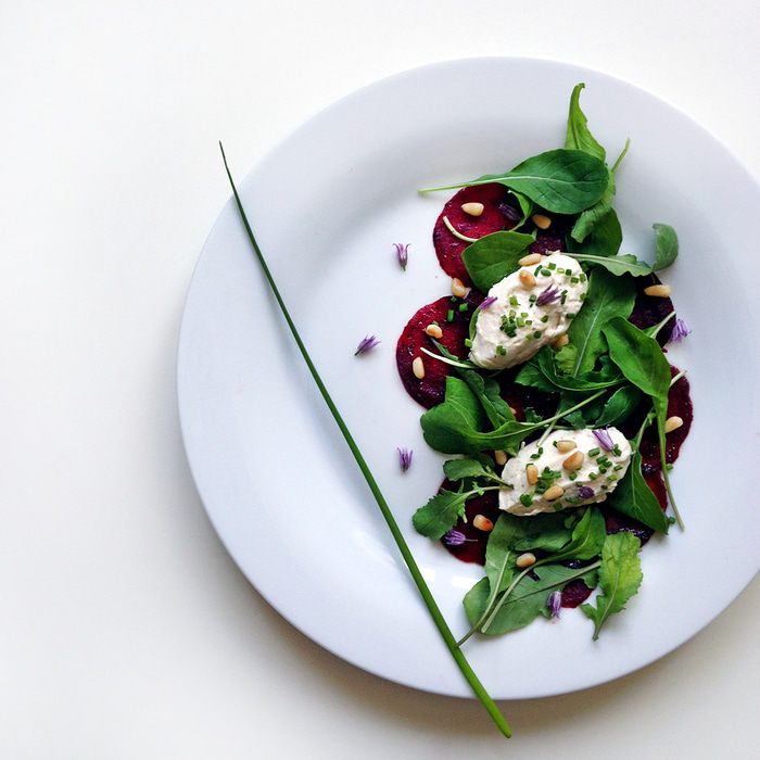 Карпаччо из свеклы с рукколой и кремом из маскарпоне