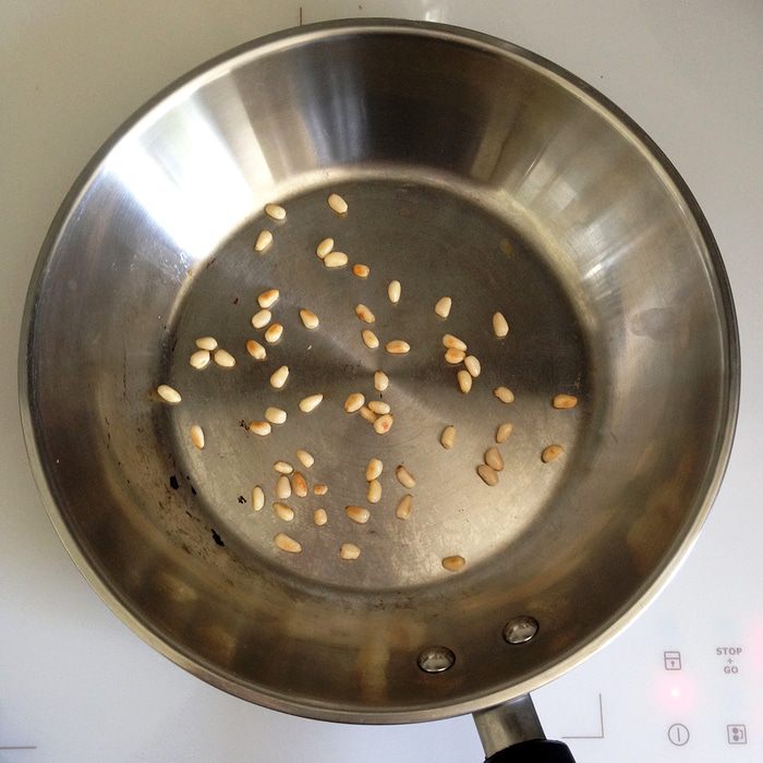 Кедровые орешки обжариваем на сухой сковородке до золотистого цвета.