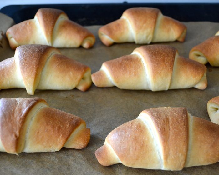 Выпекайте рогалики в разогретой духовке 20-25 минут до золотистого цвета. Следите за своей духовкой!