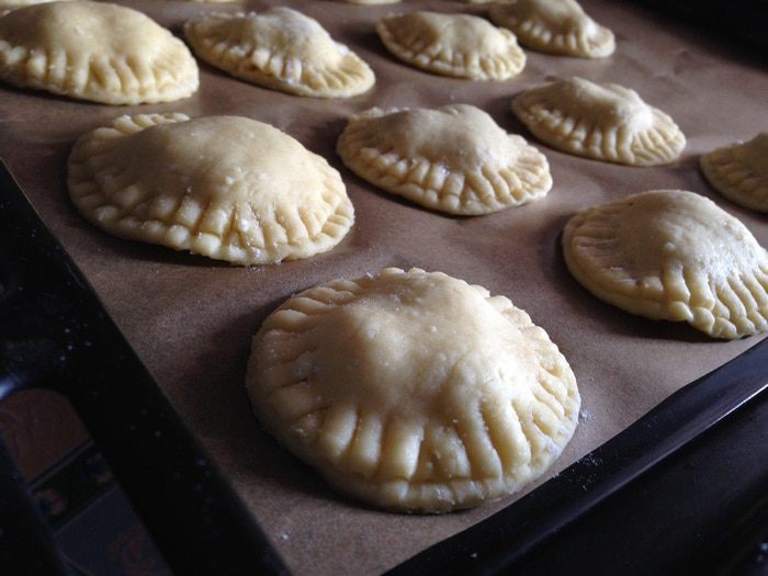 Накрыть заготовку второй половинкой и хорошо придавить края по кругу - сначала пальцем, а потом вилкой. Переложить печенье на противень, застеленный бумагой для выпечки.