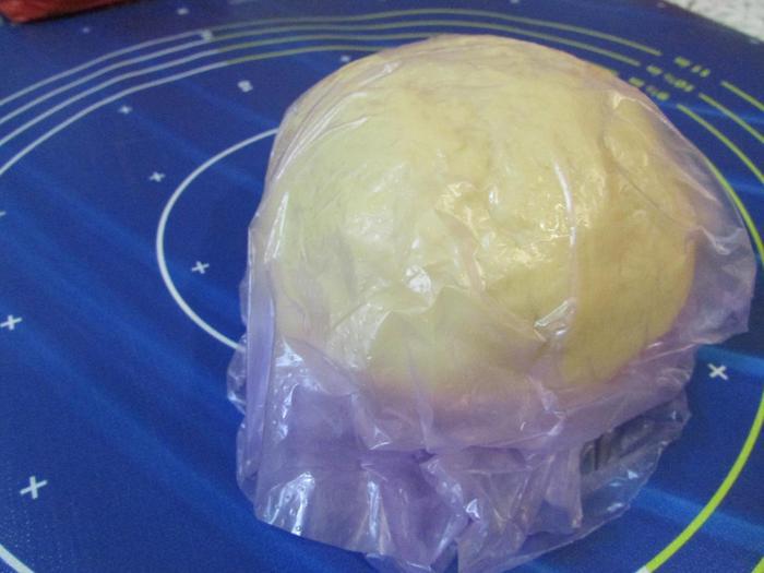 Тесто завернуть в пищевую пленку, оставить на столе, примерно на 30 минут.