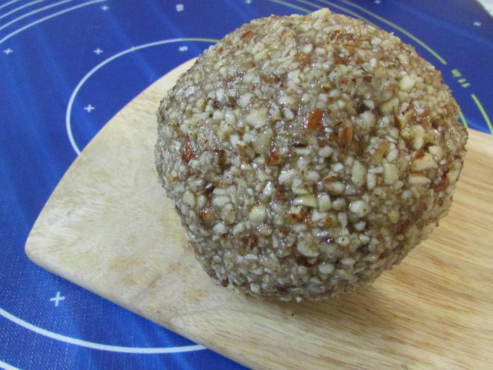 Из ореховой массы легко скатать шар, если так не получается, можно добавить белок от одного яйца.