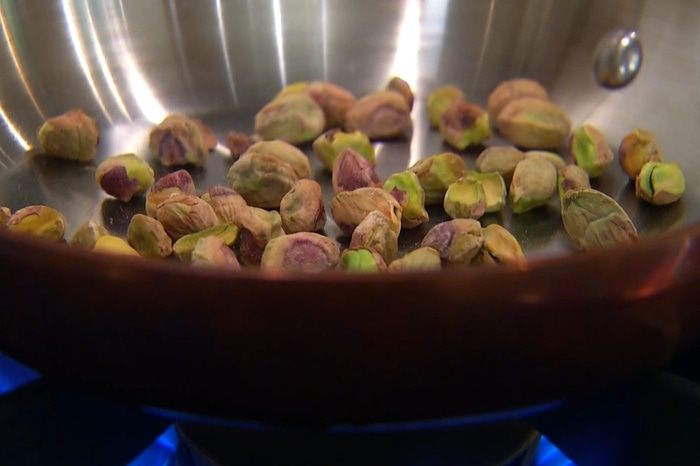 Фисташки обжарить на сухой сковороде.