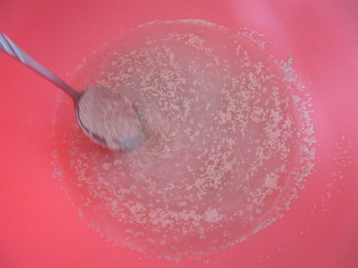В миску налейте теплой воды, добавьте сахар, дрожжи. Перемешайте и накройте полотенцем, оставьте на 15 минут.