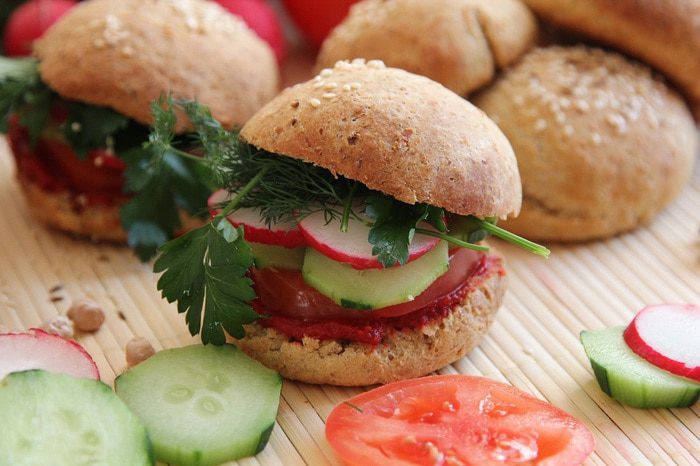 Вкусные, сытные гамбургеры получаются! Булочки просто супер, нут совершенно не чувствуется, воздушные, мягкие, легкие. Идеально подойдут для пикника..